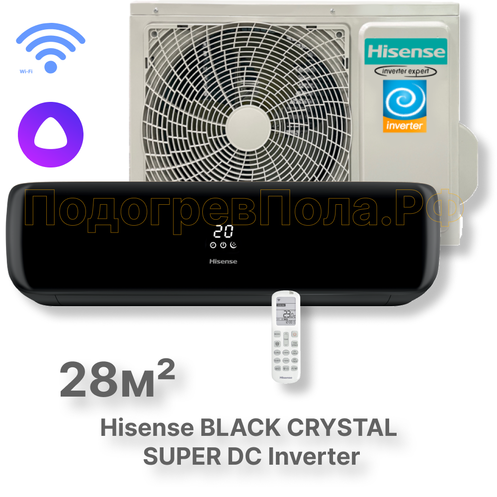 Кондиционер инверторный Hisense серии BLACK CRYSTAL SUPER DC Inverter Wi-Fi AS-10UW4RVETG01(B)